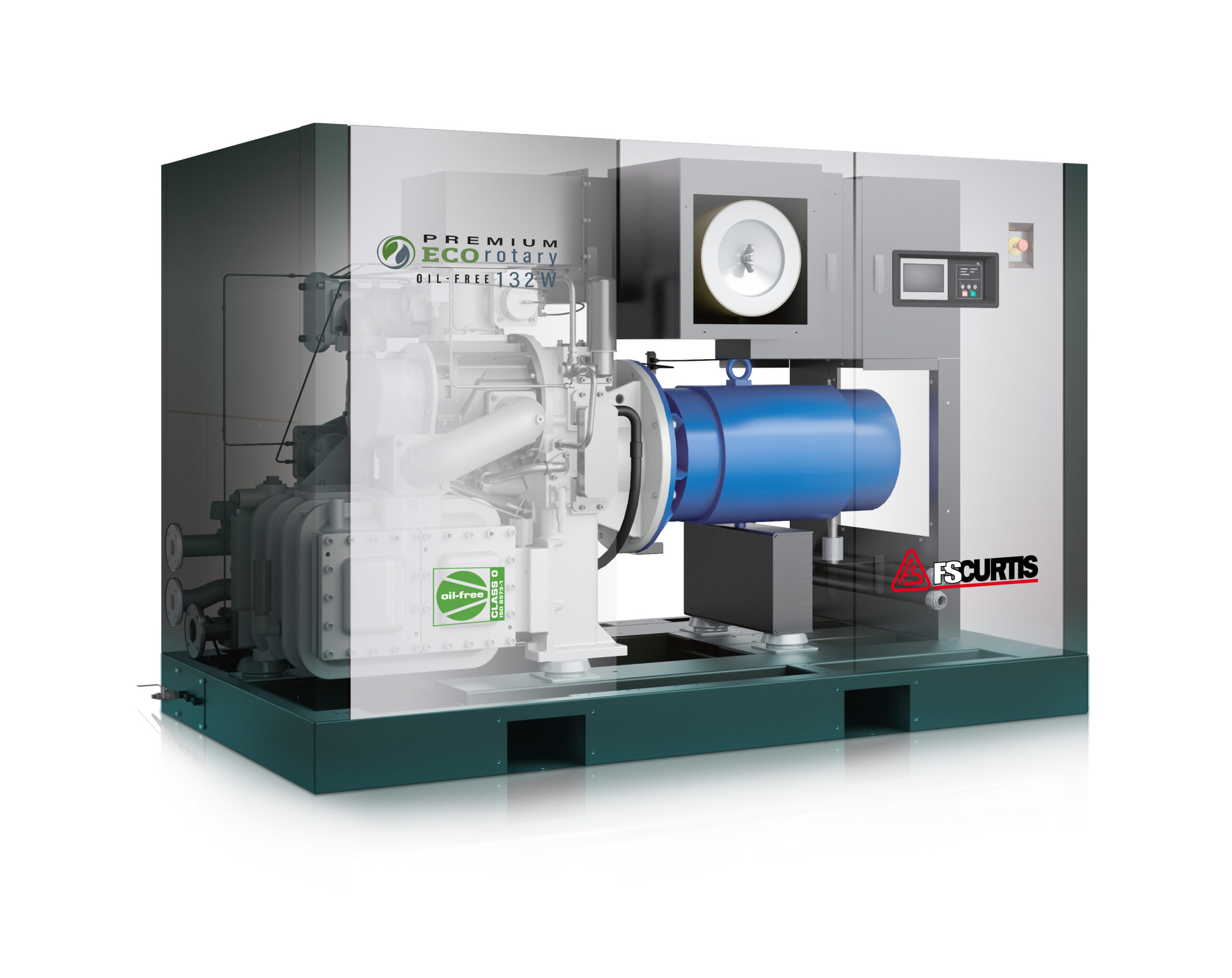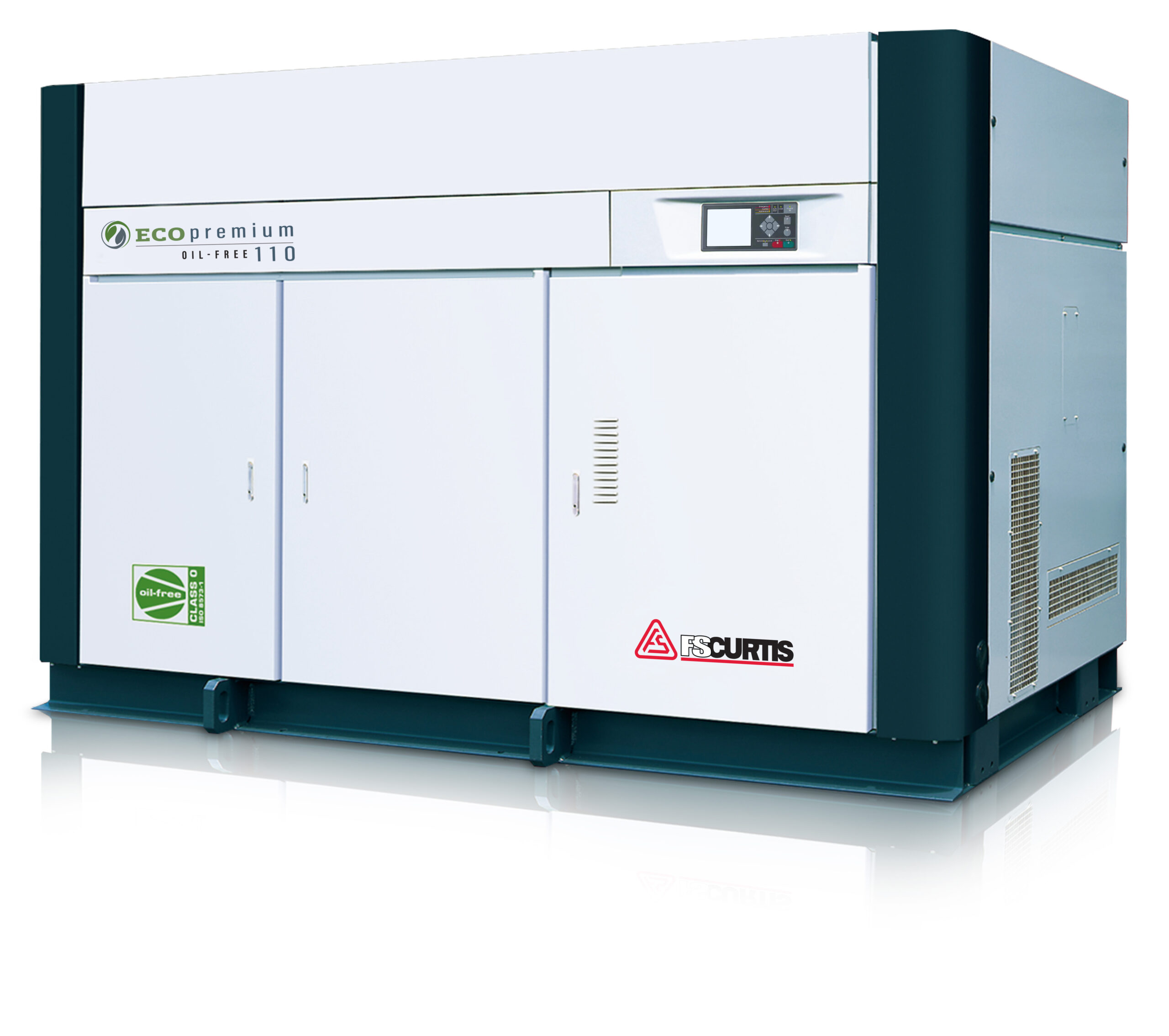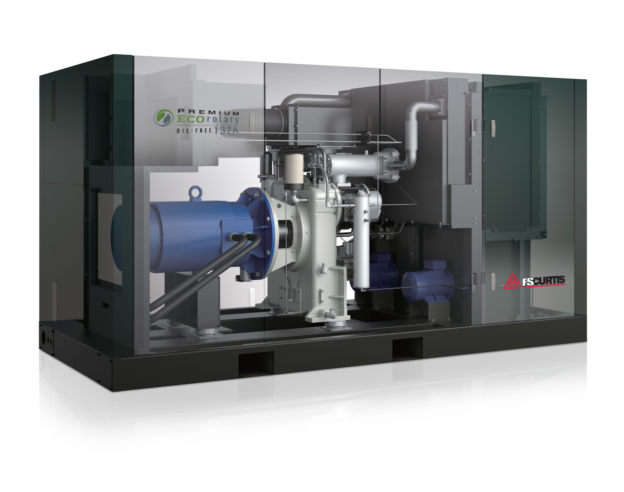 The EX Series oil-free screw air compressors, available in 75-120 kW and 132-275 kW models, are available in both air-cooled and water-cooled models, delivering industry-leading energy efficiency and the reliability and durability that are the hallmarks of FS-Curtis, an American brand.